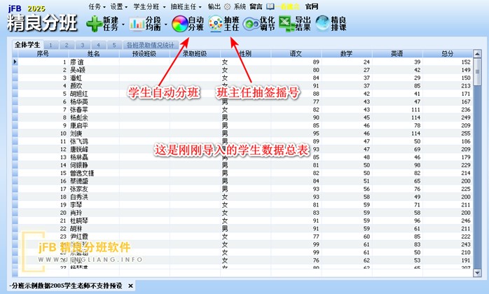 如果您是jFB精良分班软件新用户,请一定要先看软件目录中的“分班软件一分钟快速入门”教程。现在我们一起来简单熟悉下精良分班软件如何在均衡分班同时,一键完成班主任抽签。关于精良分班软件的基本使用,请参阅其它相关教程,这边就不再重复了。如果遇到困难,请联系精良分班软件客服获取帮助。